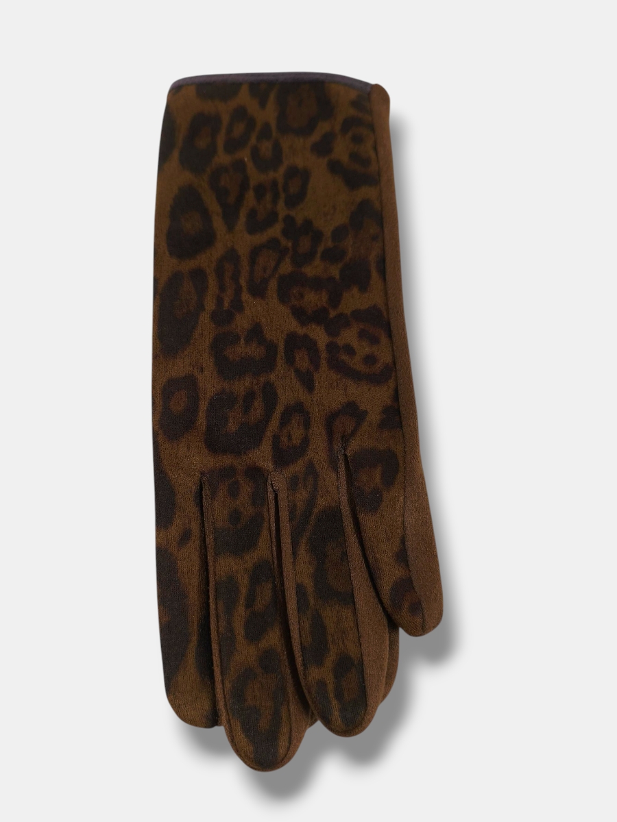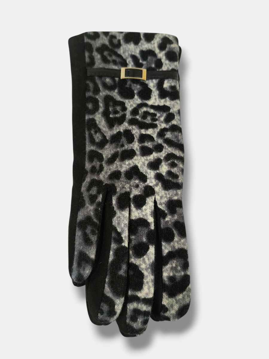 Guante de punto adaptable con diseño animal print y reverso liso, combinado para un estilo único y práctico. Perfecto para ofrecer comodidad y un toque de tendencia en tus actividades diarias.