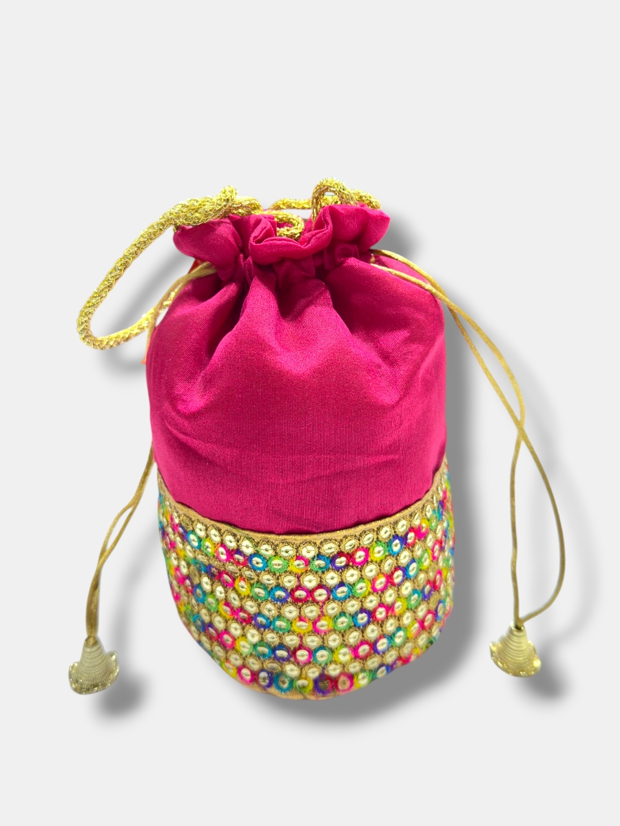 Bolso de fiesta tipo limosnera confeccionado en raso con cenefa de minilentejuelas, cierre de doble cordón con terminación en abalorios y asa de hombro tipo cordón. Perfecto para eventos especiales.