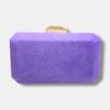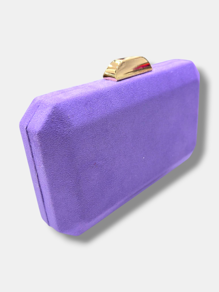 Clutch de fiesta confeccionado íntegramente en antelina con forma en esquina, cierre metálico en media luna y asa de cadena de eslabones para hombro. Perfecto para eventos especiales.