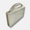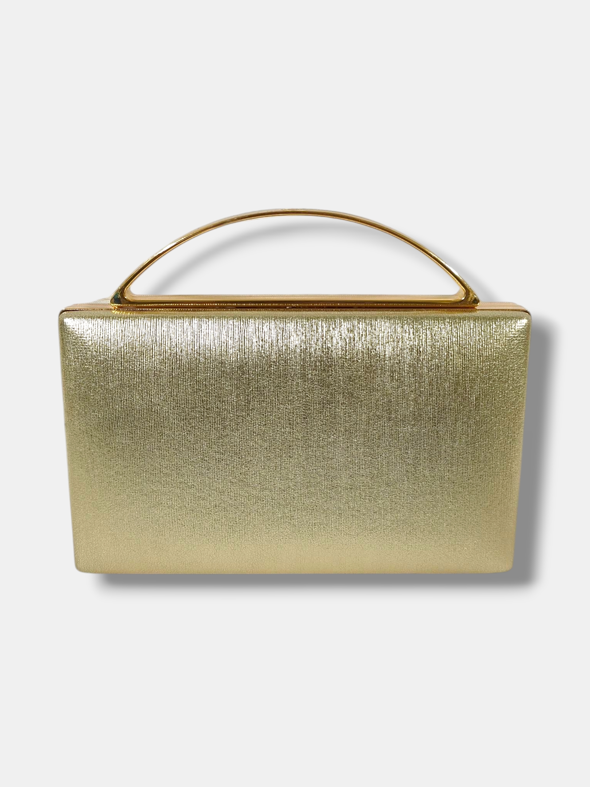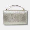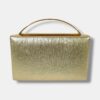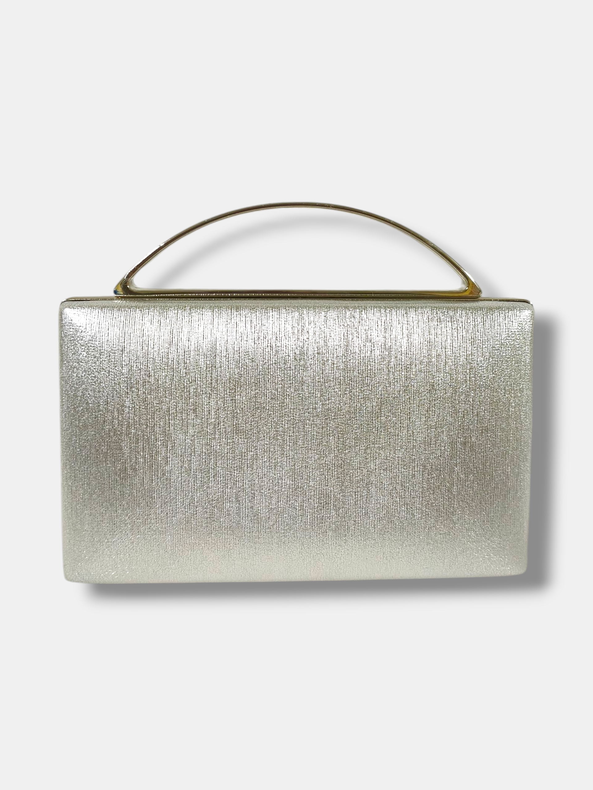 Clutch de fiesta elegante, confeccionado en polipiel rayado con ribetes metálicos. Incluye asa fija de eslabones para llevar cómodamente al hombro. Perfecto para un toque sofisticado en tu look de noche.