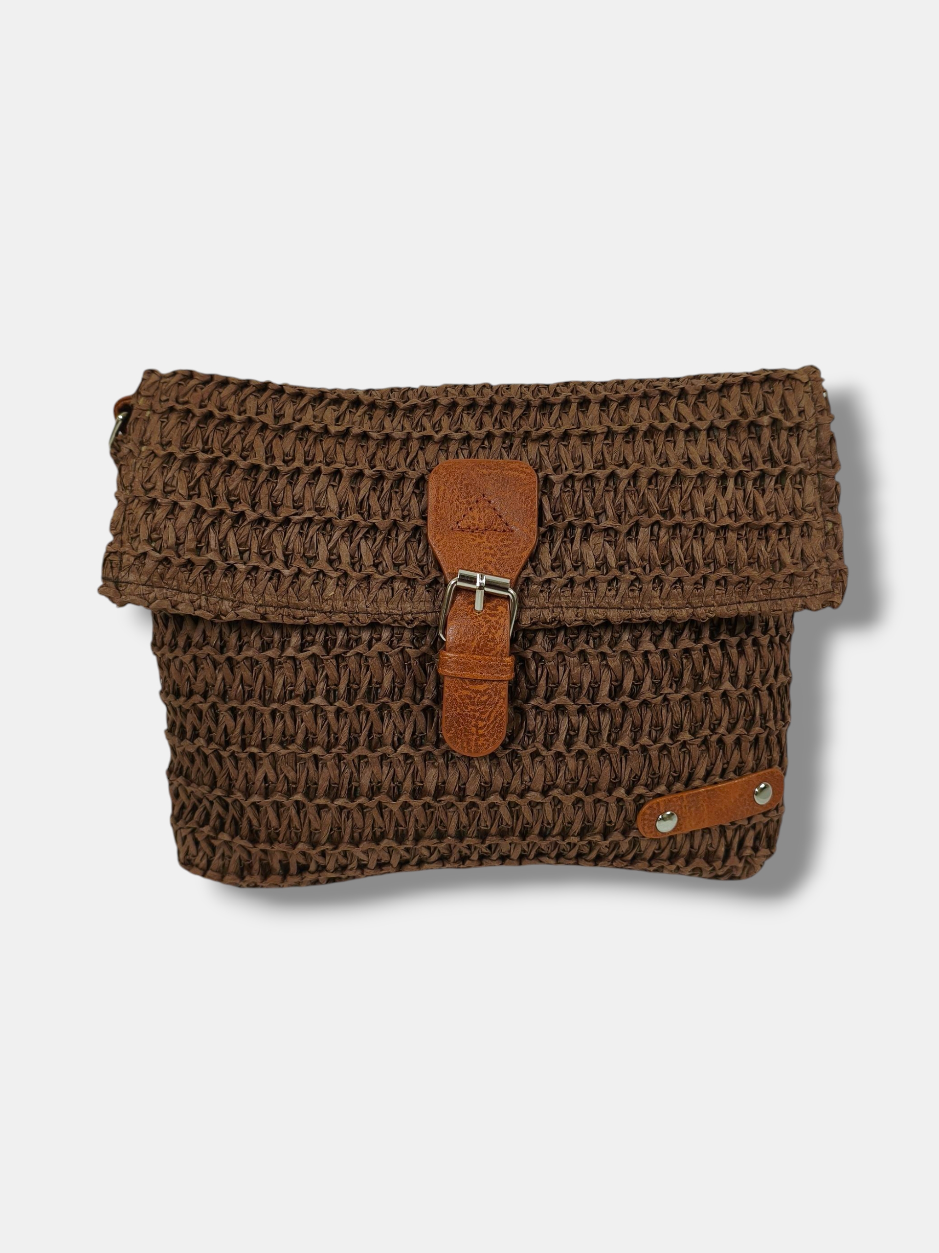 Bandolera de rafia con diseño elegante y funcional, media tapeta y cierre de hebilla en polipiel. Cuenta con correa de hombro regulable para mayor comodidad, ideal para complementar tus looks diarios con estilo natural.