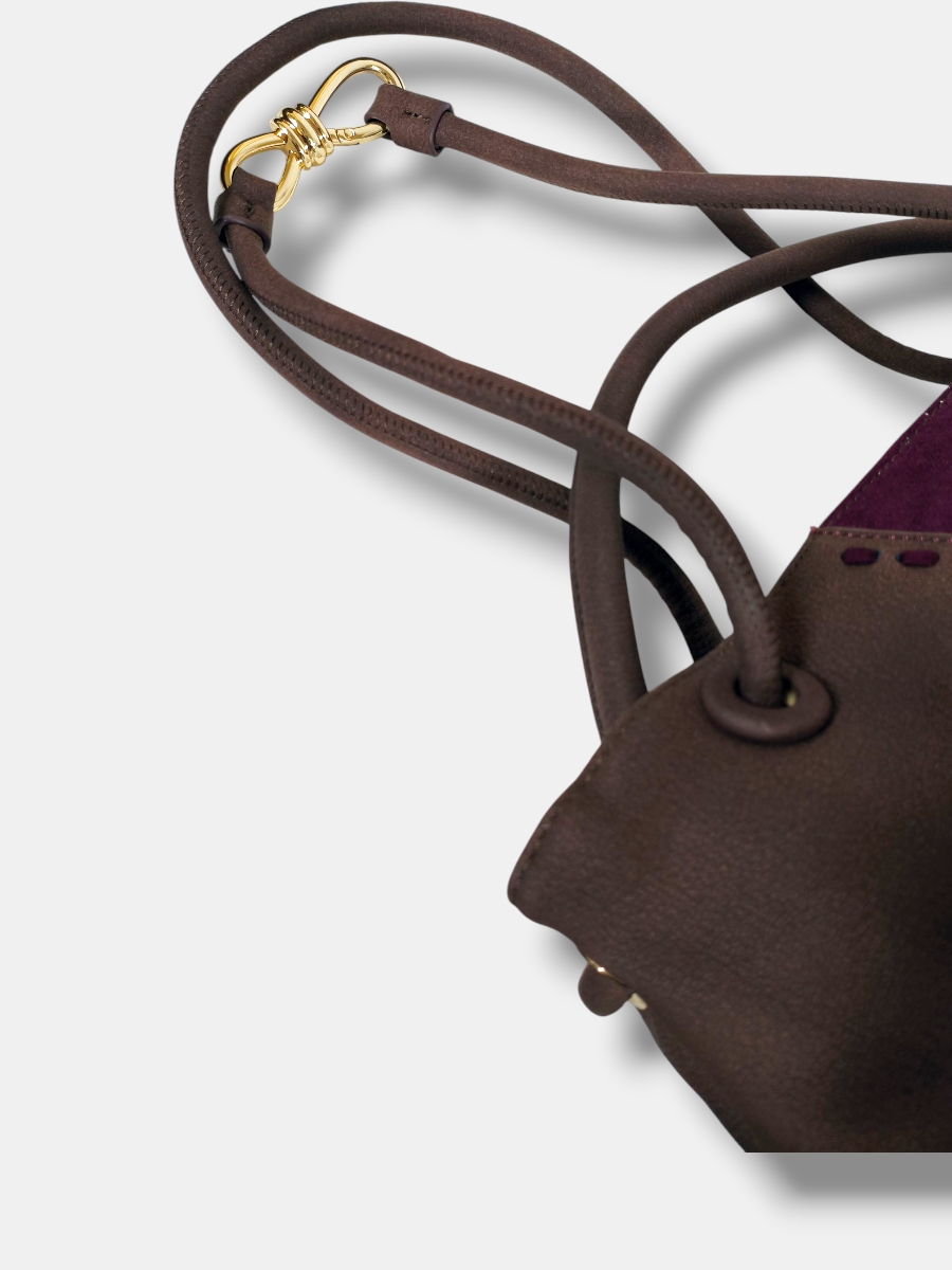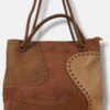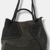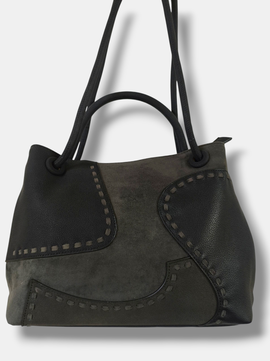 Bolso recortes confeccionada en diferentes pieles sintéticas y asas dobles de mano y hombro.