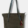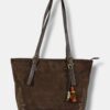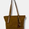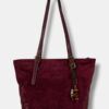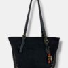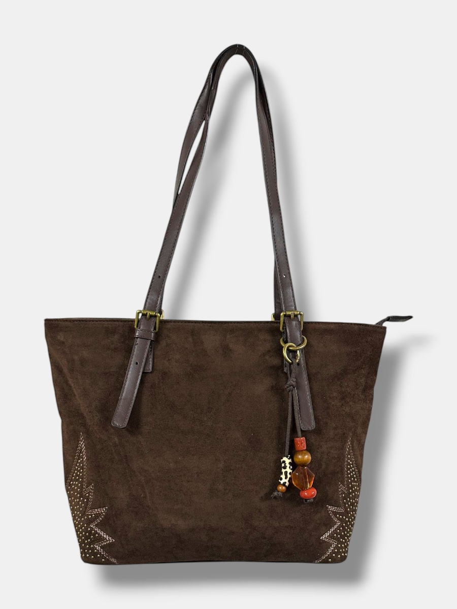 Bolso shopper efecto ante con dibujos minitachuelas y bordado esquinas. Asas regulables y charm bolitas varios tamaños y colores.