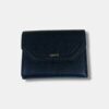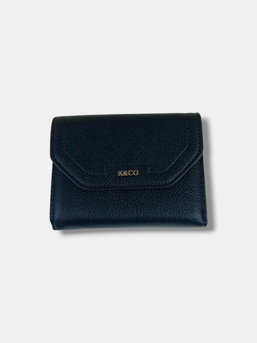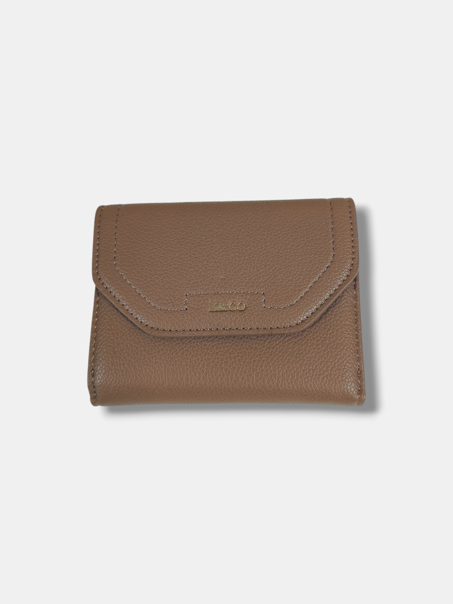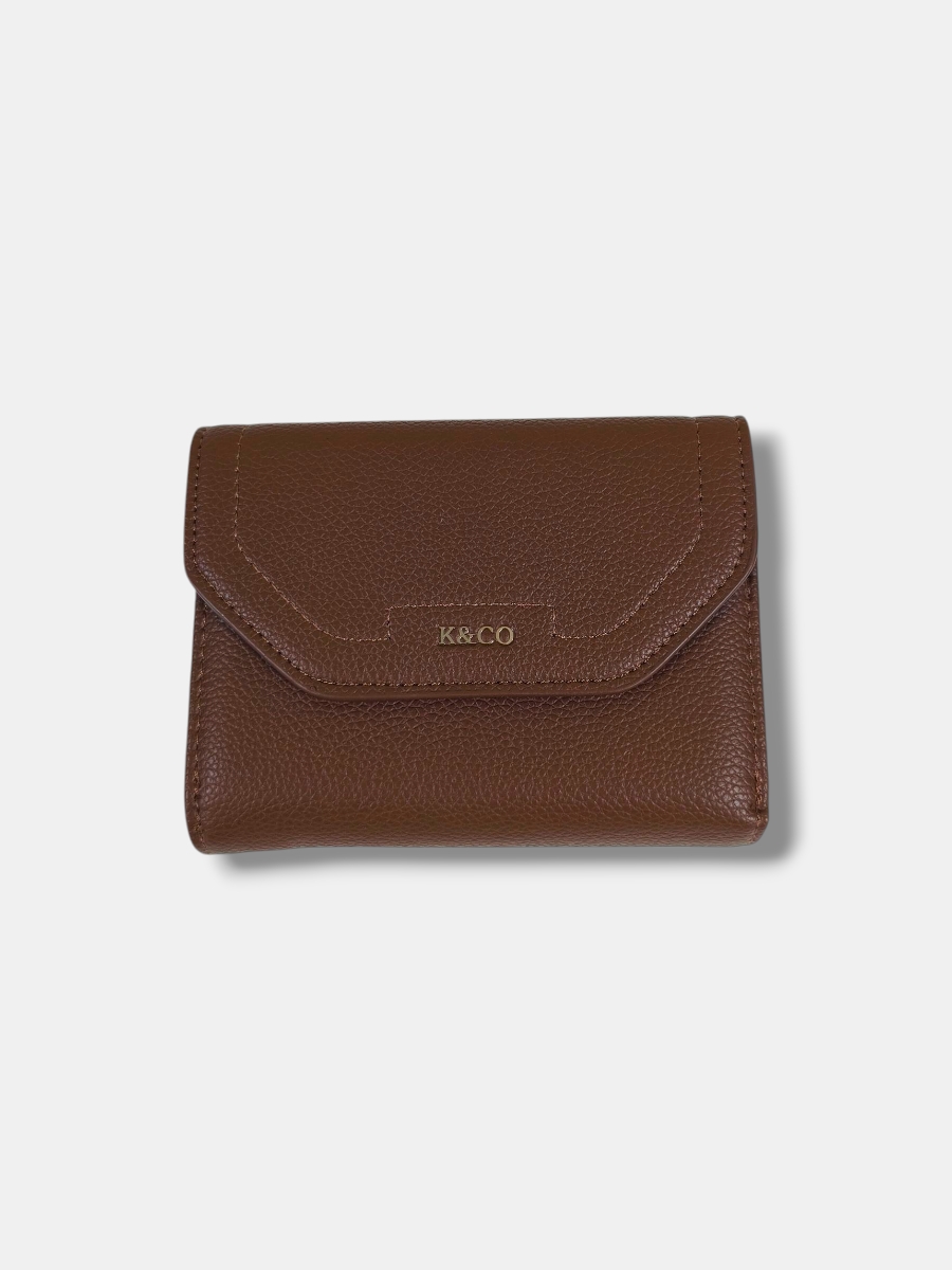 Monedero de efecto piel con cierre tapeta sobre y compartimentos para monedas exteriores, ideal para mantener tus monedas organizadas y de fácil acceso. Diseño elegante y funcional.
