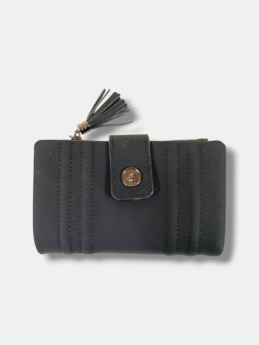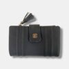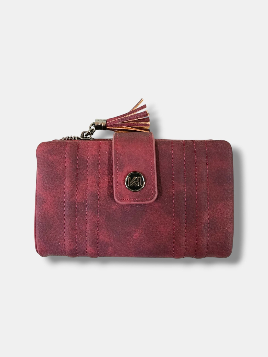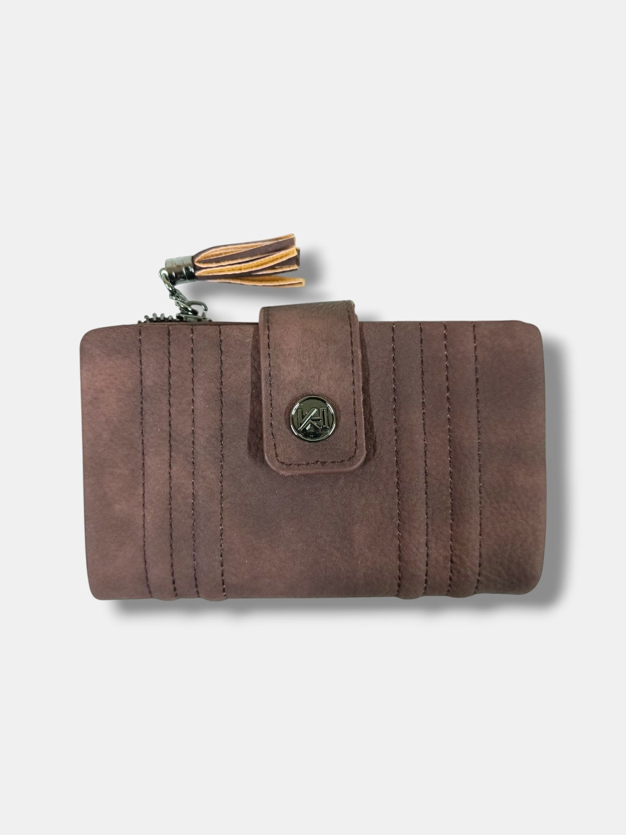 Monedero efecto piel, con colores degradados. cremallera metálica con terminación borlón y varios compartimentos.